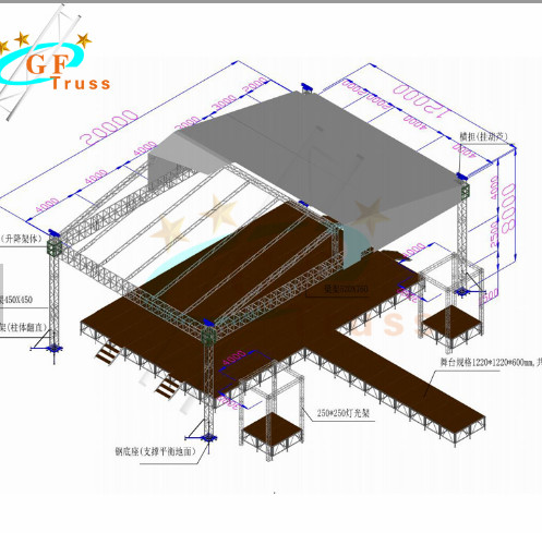 Guangzhou Guofeng Stage Equipment Co.,Ltd is a professional Truss and Stage Manufacturer engaged in design, production, sale, service. It has attracted a large number of top technical talents who specialized in design, welding and making hardware, and possesses powerful design capacity and advanced production equipment.The advancement of its product manufacturing molds and hardware processing equipment makes Guofeng as a leader in truss industry.